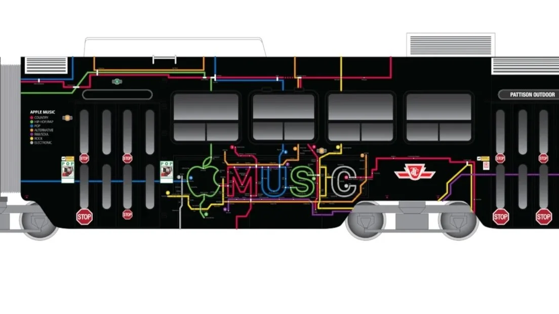Music: The Tracks You Love dominated the city’s visual landscape: buses and subways, transit tunnels, streetcars, station hubs, bus shelters, and traditional OOH.